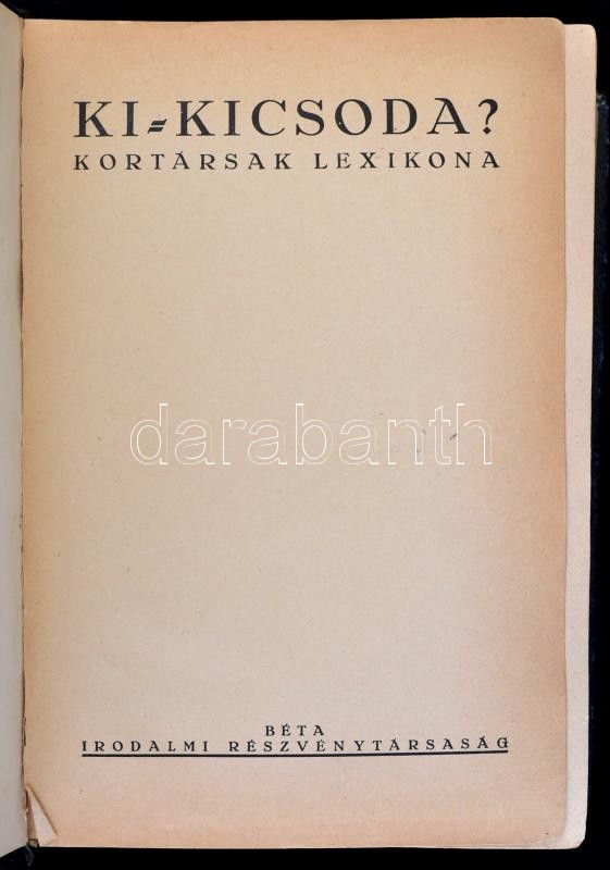 Leírás: Ki - kicsoda? Kortársak lexikona. Budapest, é.n., Béta Irodalmi Rt. Kiadói aranyozott egészvászonkötésben javított gerinccel
