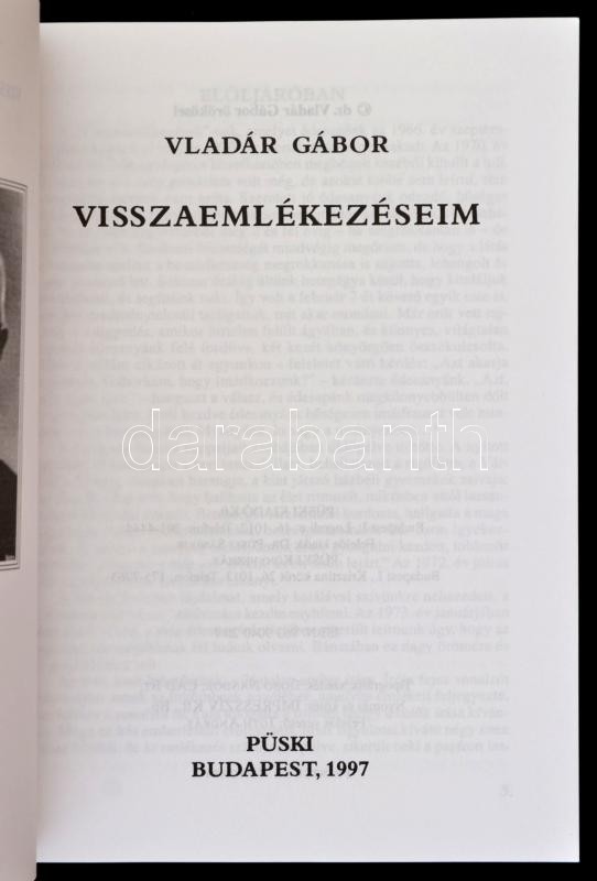 Vladár Gábor: Visszaemlékezéseim. Bp., 1997, Püski. Papírkötésben, jó ... https://www.darabanth.com/hu/310-Gyorsarveres/310.0/Konyvek/Konyvek-Tortenelem~500004/Vladar-Gabor-Visszaemlekezeseim-Bp-1997-Puski-Papirkotesben-jo-allapotban~II1692640