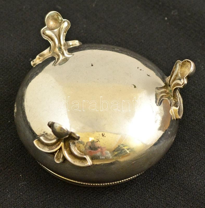 Leírás: Ezüst(Ag) koronás címeres fűszertartó, d: 5,5 cm, nettó: 29,6 g