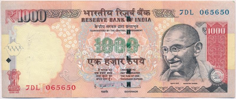 India 2013. 1000 Rupees C:VF,F need... https://www.darabanth.com/hu/310-Gyorsarveres/310.0/Numizmatika/Kulfoldi-bankjegyek~400011/India-2013-1000R-TII-III-tuly--India-2013-1000-Rupees-CVF-F-needle-hole~II1690542