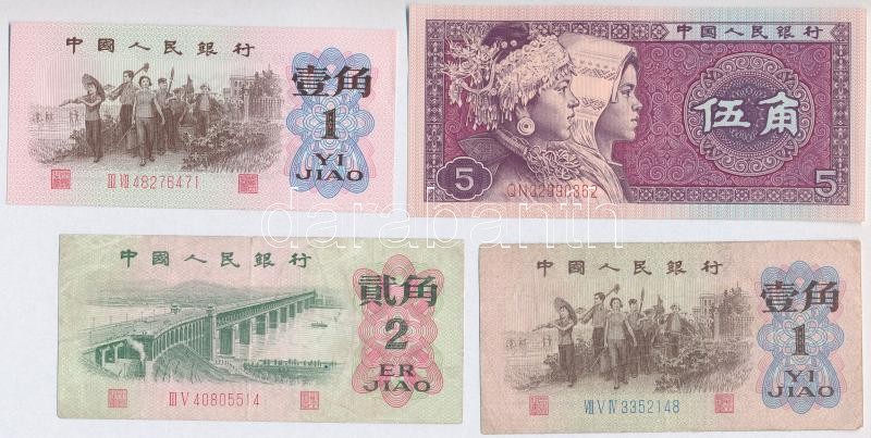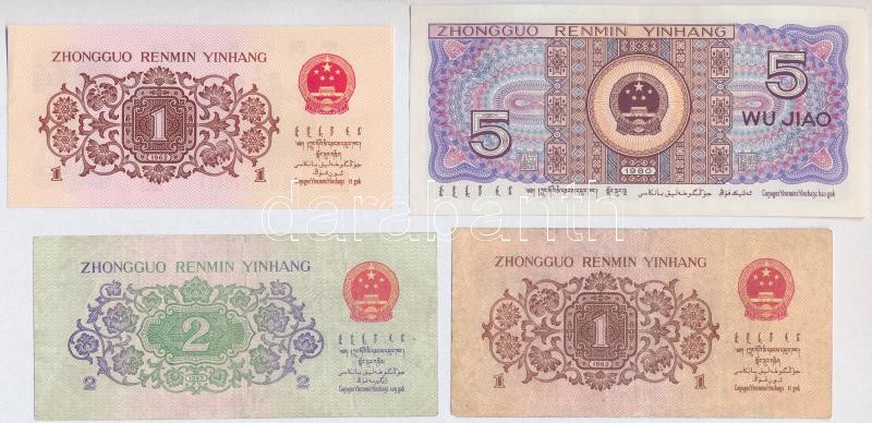 Kínai Népköztársaság 1962. 1J (2x) egyik három kék római számmal, másik két piros római számmal + 2J + 1980. 5J T:I-III