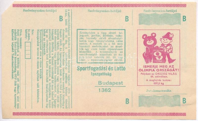Leírás: 1979. "Nemzetközi Olimpiai Sportlottó" lottó szelvény, kitöltetlen T:I-,II