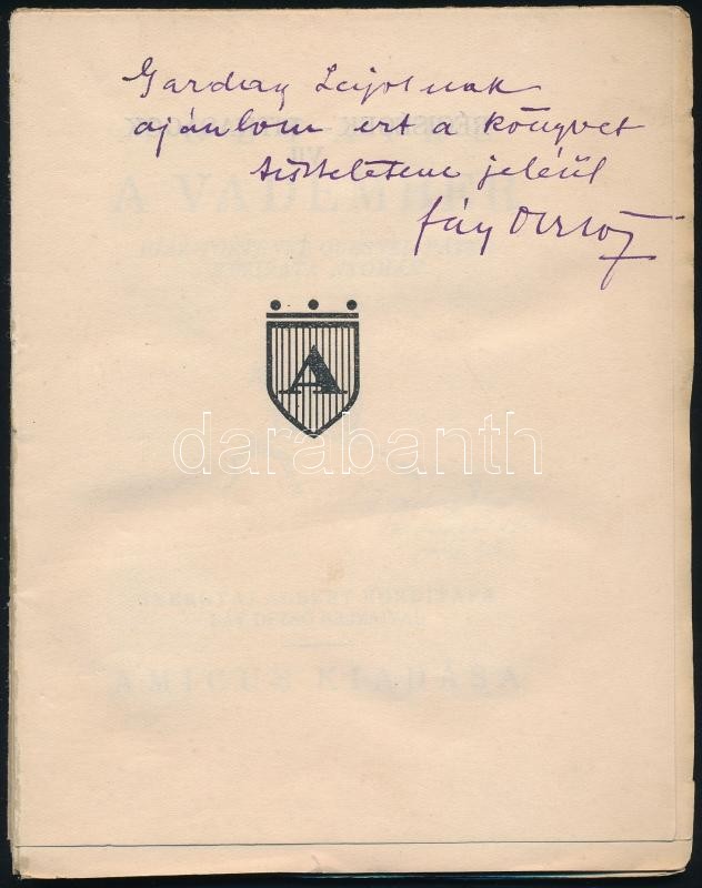 Fáy Dezső (1888-1954) festő, grafikus dedikálása Voltaire: A vadember ... https://www.darabanth.com/hu/311-Gyorsarveres/311.0/Festmeny-mutargy-papirregiseg-egyeb/Alairas~300018/Fay-Dezso-1888-1954-festo-grafikus-dedikalasa-Voltaire-A-vadember-cimu-konyvtoredeken~II1701531
