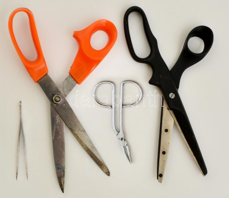 Leírás: 2 db olló és 2 db csipesz, h: 7,5 és 23 cm között