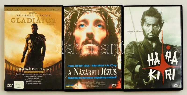 3 db DVD: Harakiri, Gladiátor, A názáreti Jézus https://www.darabanth.com/hu/311-Gyorsarveres/311.0/Festmeny-mutargy-papirregiseg-egyeb/Bolhapiac~300011/3-db-DVD-Harakiri-Gladiator-A-nazareti-Jezus~II1694490
