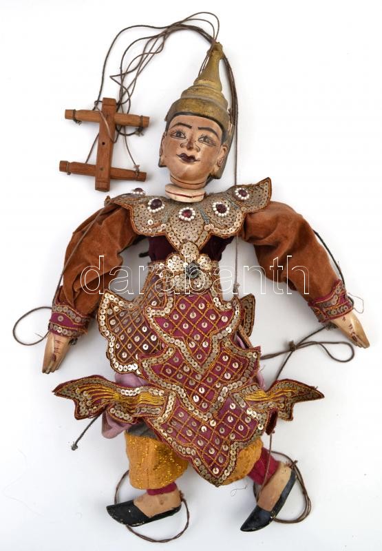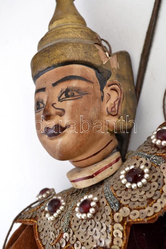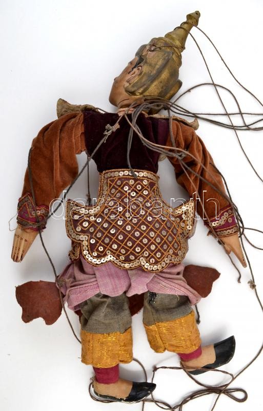 Leírás: Díszes keleti bábfigura, hiányos, m: 42 cm