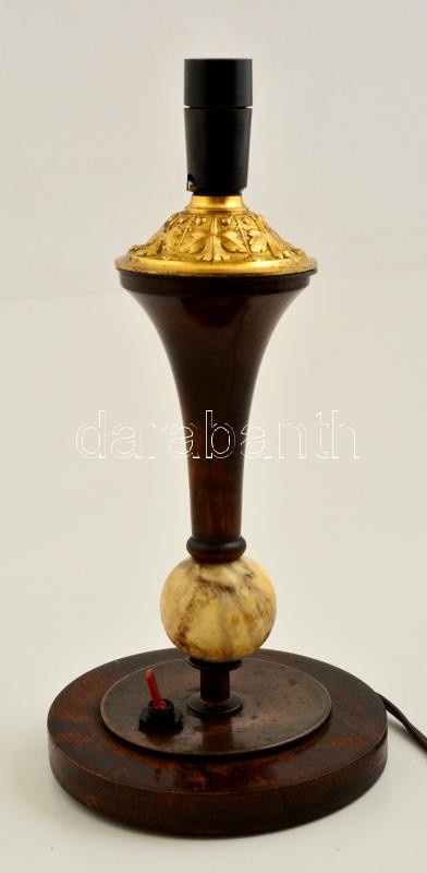 Leírás: Fa és alabástrom elemekből álló lámpatest, régi zsinórozással, m: 30,5 cm