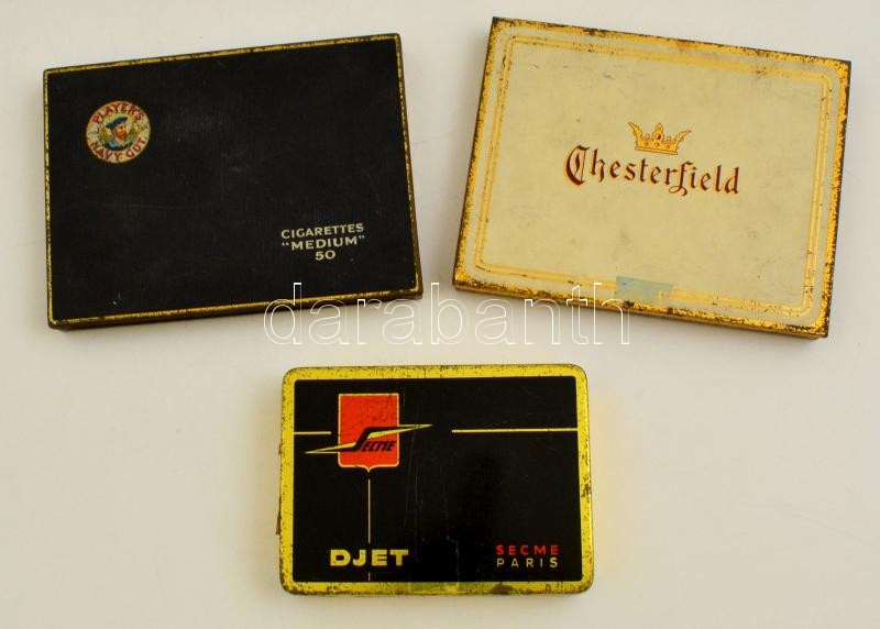 Leírás: Fém cigarettás doboz, 3 db, 8,5x11,5 és 11x14,5 cm közti mérteben