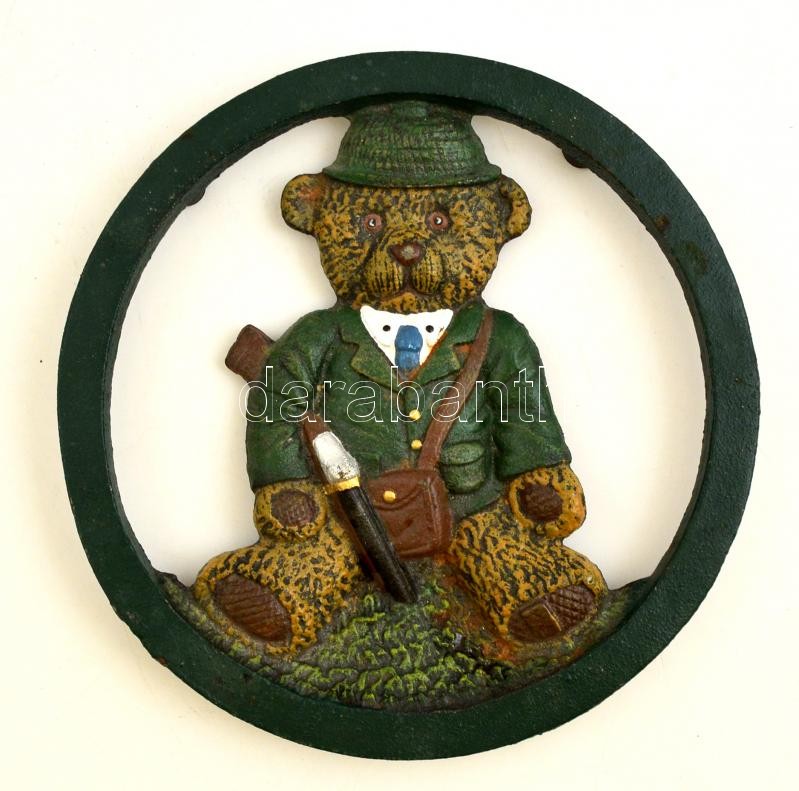 Leírás: Öntöttvas mackós edényalátét és mécsestartó, 2 db, d: 20 cm, 19x12x12 cm