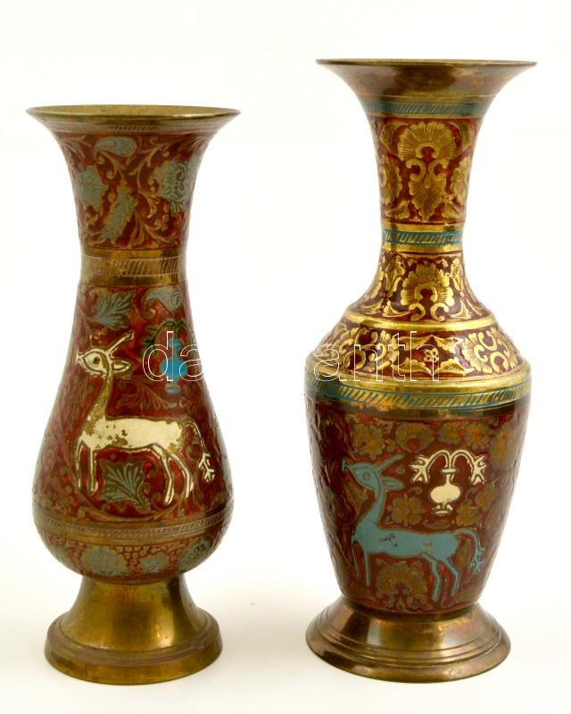 Leírás: Ornamentikus mintával díszített réz váza, 2 db, m: 20 és 21 cm
