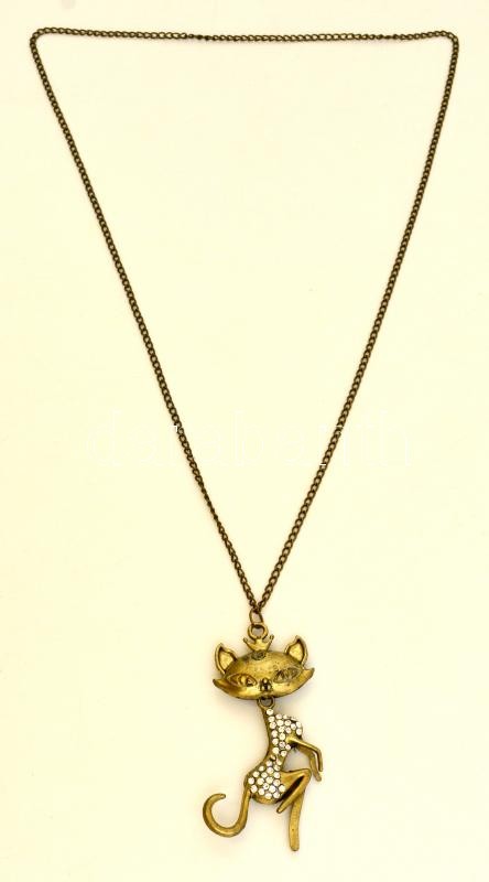 Leírás: Rézszínű cica medál láncon, jó állapotban, h: 66 cm