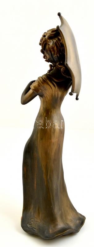 Leírás: Bod Éva (1924-2004): Napernyős hölgy. Festett mázas kerámia, jelzett, hibátlan, m:41 cm