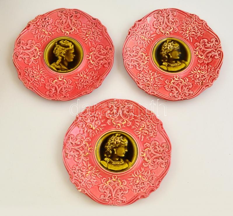 Leírás: Schütz Cilli szecessziós tányér, 3 db, kézzel festett, lepattanásokkal, d: 20 cm