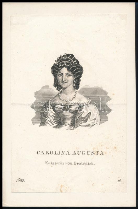 Karolina Auguszta osztrák császárné, magyar királyné, acélmetszet, pap... https://www.darabanth.com/hu/311-Gyorsarveres/311.0/Festmeny-mutargy-papirregiseg-egyeb/Metszetek~300003/Karolina-Auguszta-osztrak-csaszarne-magyar-kiralyne-acelmetszet-papir-kartonra-ragasztva~II1696540