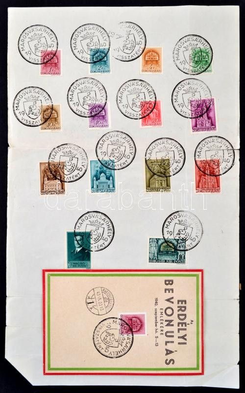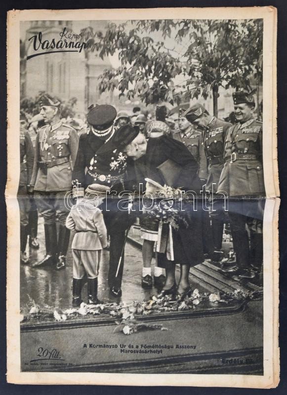 1940 Képes Vasárnap 1940. szeptember 20., 39. szám, szakadozott papírkötésben, benne számos érdekes írással Erdély visszatéréséről, valamint fekete-fehér fotókkal Marosvásárhely és Szászrégen városaiba való bevonulásról+ Erdélyi bevonulás emlékére emléklap és lap Marosvásárhely visszatért bélyegzésekkel