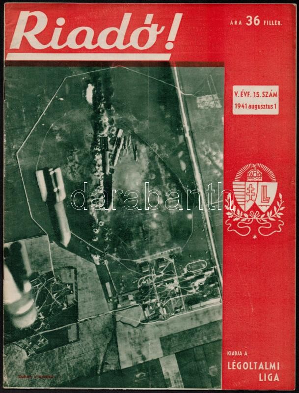 1941 A Riadó! a Légoltalmi Liga lapja V. évfolyamának 15. száma https://www.darabanth.com/hu/311-Gyorsarveres/311.0/Festmeny-mutargy-papirregiseg-egyeb/Nyomtatvanyok~300050/1941-A-Riado-a-Legoltalmi-Liga-lapja-V-evfolyamanak-15-szama~II1697773