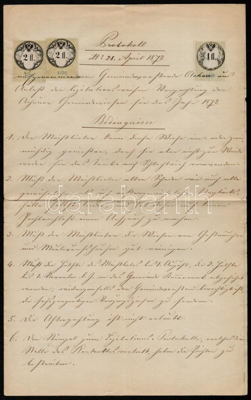 Leírás: Ausztria 1872 Nyugta 1Ft + 2 x 2Ft okmánybélyeggel