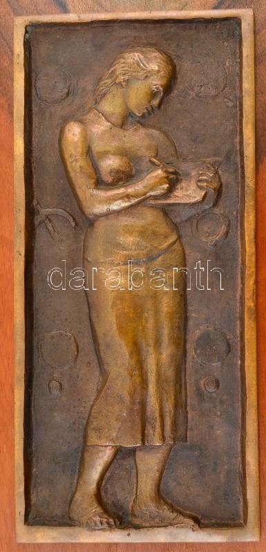Leírás: Martsa István (1912-1978) : Író nő. Bronz falikép, jelzés nélkül, falemezre erősítve, 32×15 cm