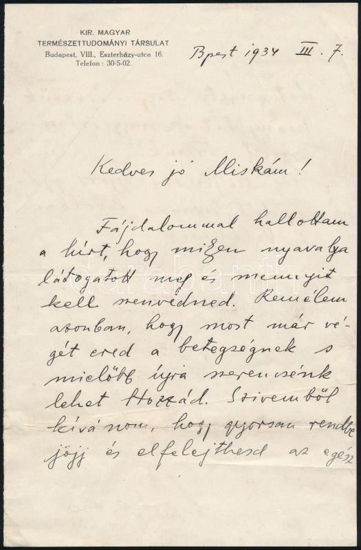 Leírás: 1934 Bp., Rapaics Raymund (1885-1954) botanikus, biológus saját kézzel írt, személyes hangvételű levele