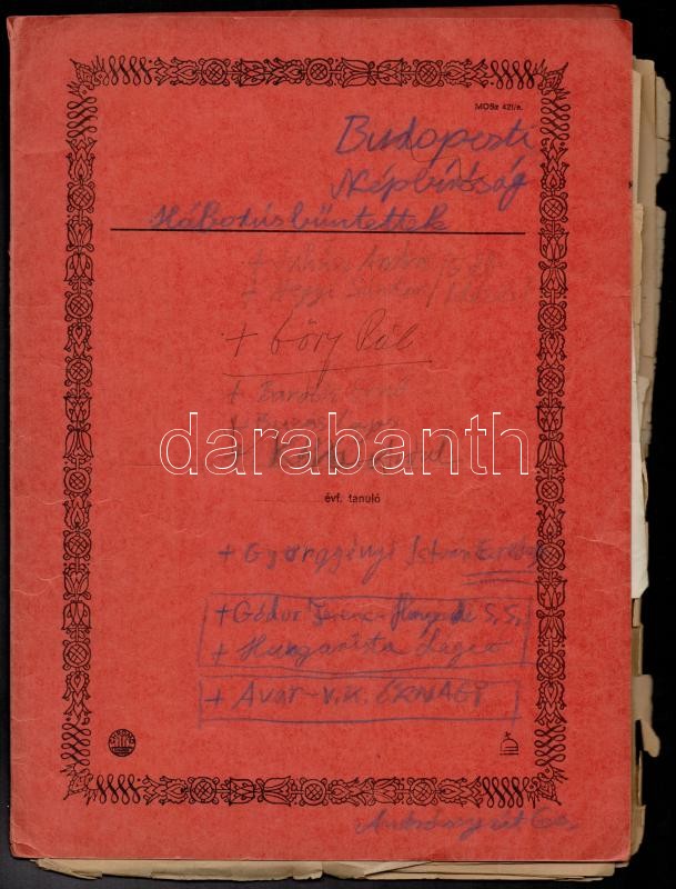 cca 1946-1948 A Budapesti Népbíróság háborús bűntettekkel kapcsolatos ... https://www.darabanth.com/hu/311-Gyorsarveres/311.0/Festmeny-mutargy-papirregiseg-egyeb/Tortenelmi-dokumentumok-keziratok-erdekessegek~300017/cca-1946-1948-A-Budapesti-Nepbirosag-haborus-buntettekkel-kapcsolatos-iratai~II1697806