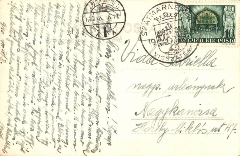 Leírás: 1940 Szatmárnémeti, Szatmár, Satu Mare; Református főgimnázium / grammar school. photo + 1940 Szatmárnémeti visszatért So. Stpl.