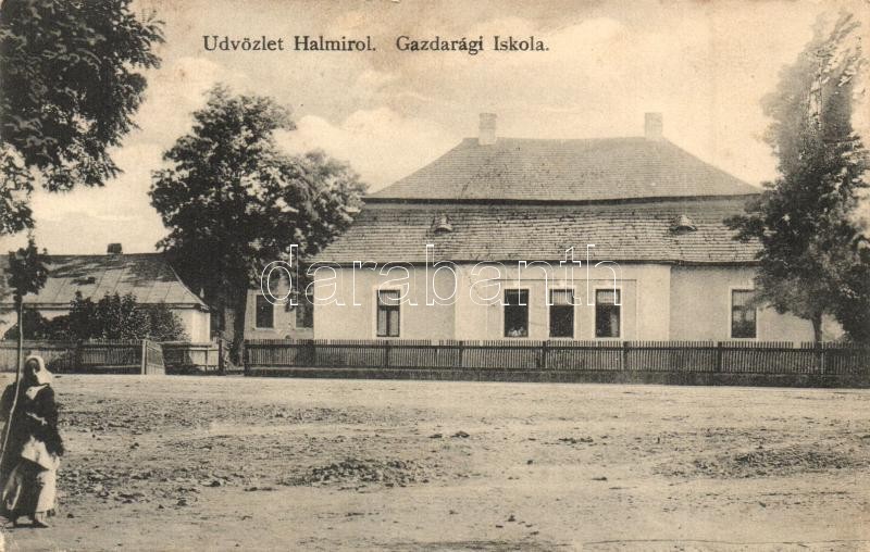 Leírás: Halmi, Halmeu; Gazdasági iskola. Liebeck és Grosz kiadása / economic school (EK)