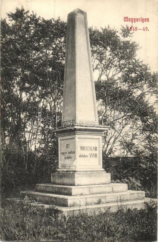 Magyarigen, Ighiu; az 1848-as román mészárlás emlékoszlopa (187 magyar halott síremléke). Schäser Ferenc kiadása / obelisk, tomb monument of the 187 Hungarians massacred by Romanian rebels in 1848