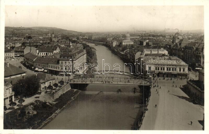 Leírás: Nagyvárad, Oradea; A város látképe a Körös folyóval, híd, Friedmann Dezső, Deutsch üzlete, cukrászda, étterem / Cris river bridge, shops, confectionery, restaurant (EK)