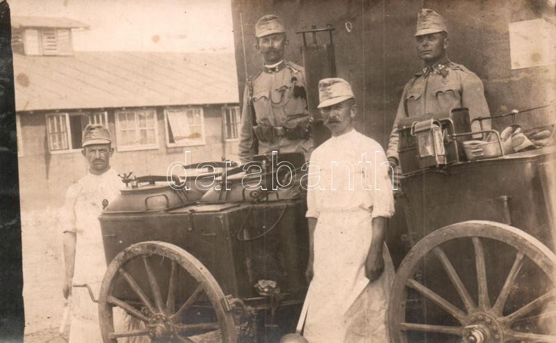 Tábori konyha 2 szakácsa fegyveres védelemmel / WWI K.u.K. military fi... https://www.darabanth.com/hu/311-Gyorsarveres/311.0/Kepeslapok/Katonai~500068/Tabori-konyha-2-szakacsa-fegyveres-vedelemmel-WWI-KuK-military-field-kitchen-cooks-with-arme~II1701525