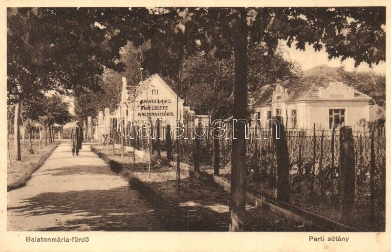 Leírás: Balatonmária-fürdő, Parti sétány, Gyenes Lajos fióküzlete Nagykanizsáról. Gyenes Lajos saját kiadása