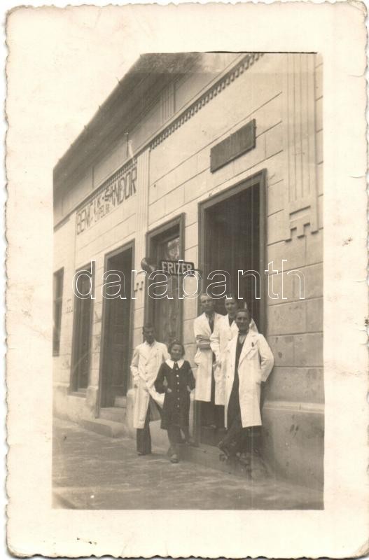 1938 Kula, Bencik Sándor fodrász üzlete előtt / hairdresser shop, phot... https://www.darabanth.com/hu/311-Gyorsarveres/311.0/Kepeslapok/Vajdasag~500011/1938-Kula-Bencik-Sandor-fodrasz-uzlete-elott-hairdresser-shop-photo-ragasztonyom-gluemar~II1697351