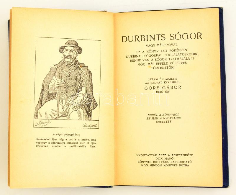 Leírás: Göre Gábor (Gárdonyi Géza): Durbints sógor. Bp., 1925, Globus. Mühlbeck Károly szövegközti illusztrációival, kiadói festett, aranyozott egészvászon kötésben