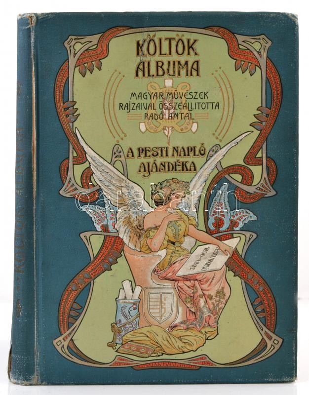 Költők albuma. Jelenkori magyar költők verseiből. Szerk.: Radó Antal. Harminczöt magyar festőművész képeivel. A Pesti Napló karácsonyi ajándéka előfizetőinek. Budapest, é.n., Lampel Róbert (Wodianer F. és Fiai)., 284 p. Negyedik, módosított és bővített kiadás. Kiadói aranyozott, dombornyomott, festett kiadói egészvászon kötésben, festett lapélekkel, kissé kopott borítóval és gerinccel.