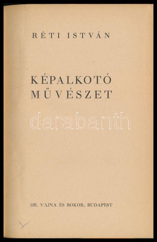 Réti István: Képalkotó művészet. Bp.,1944, Dr. Vajna György és Társa, (Globus-ny.) Kiadói kartonált papírkötés, kiadói papírborítóban, kissé sérült gerinccel.