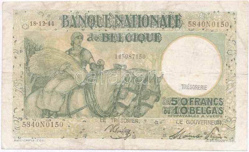 Belgium 1944. 50 Francs / 10 Belgas C:VG restored