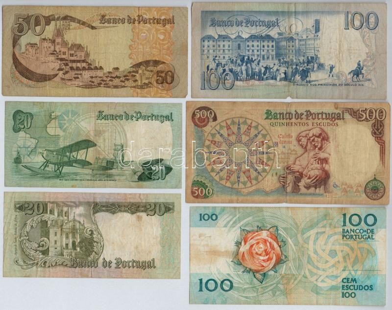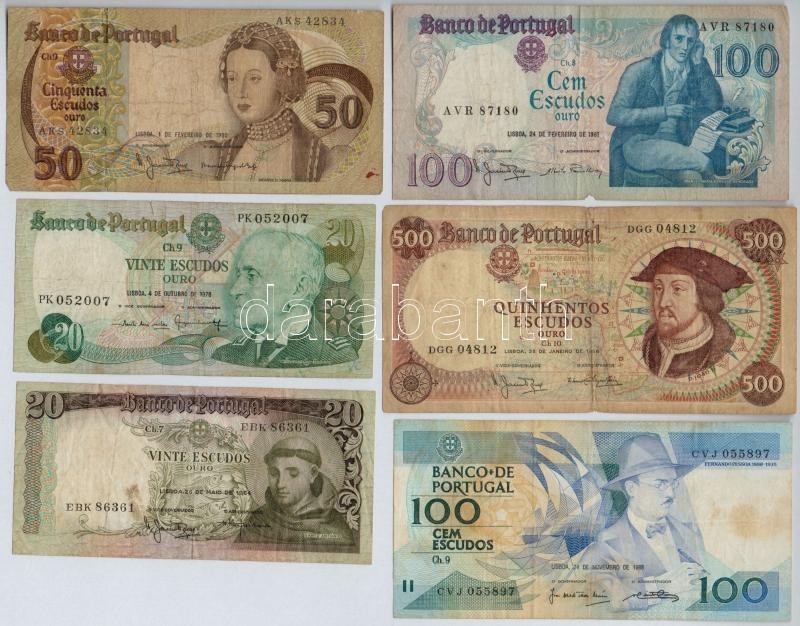 Leírás: Portugália vegyes bankjegy tétel (6xklf) T:III,III-