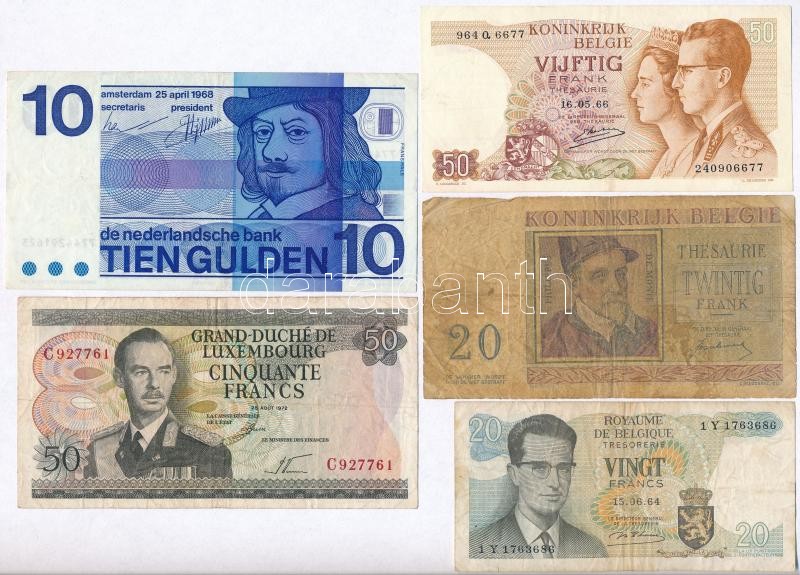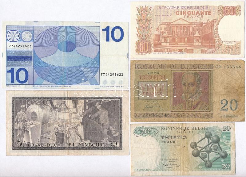 Vegyes: 5db-os belga, luxemburgi és holland bankjegy tétel, mindf klf T:vegyes