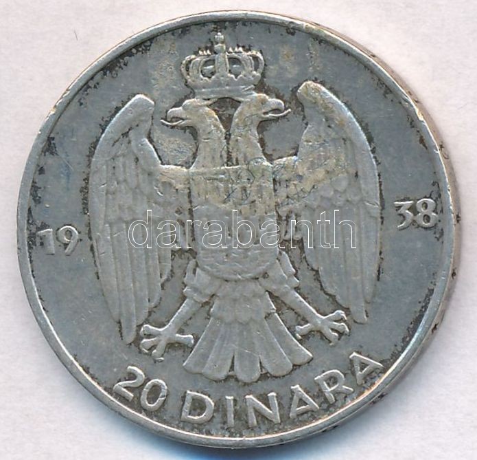 Leírás: Jugoszlávia 1938. 20D Ag "II. Péter" T:2,2- kis ragasztásnyom Yugoslavia 1938. 20 Dinara Ag "Petar II" C:XF,VF small glue mark