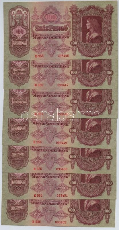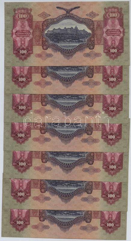 1930. 100P (7x) sorszámkövetők T:I,I- https://www.darabanth.com/hu/311-Gyorsarveres/311.0/Numizmatika/Magyar-bankjegyek~7/1930-100P-7x-sorszamkovetok-TI-I-~II1696070