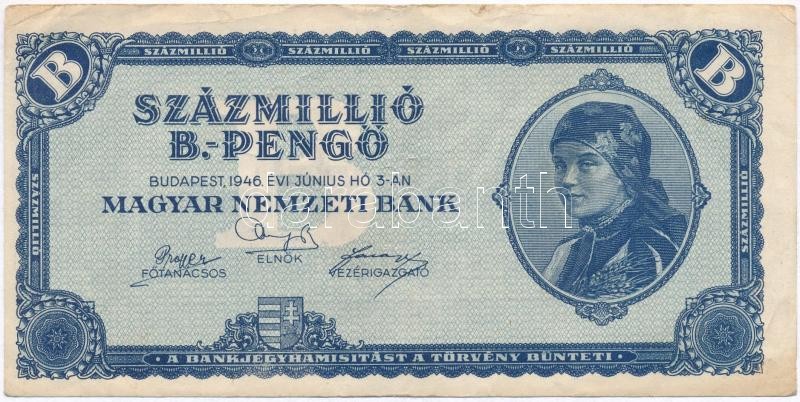 1946. 100.000.000BP T:III https://www.darabanth.com/hu/311-Gyorsarveres/311.0/Numizmatika/Magyar-bankjegyek~7/1946-100000000BP-TIII~II1695611