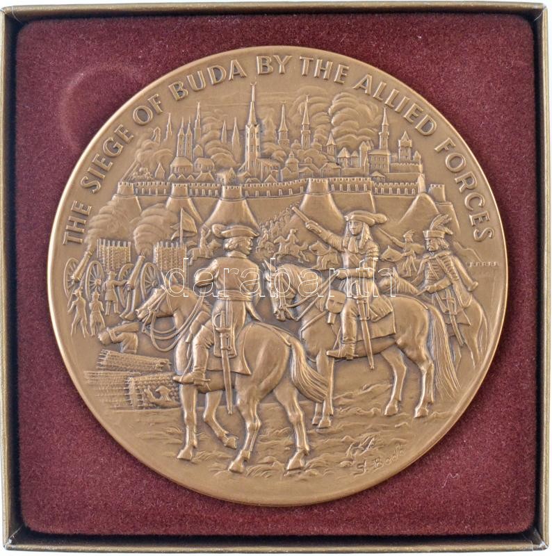 Bodó Sándor (1920-) 1986. "Buda felszabadításának 300. évfordulója" alkalmából az Amerikai Egyesült Államokban kiadott aranyozott Br emlékérem, angol és magyar nyelvű információs lappal, saját tokjában (63,5mm) T:1