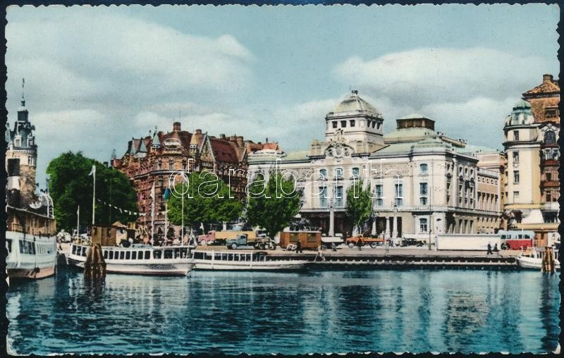 1954 A Honvéd labdarúgócsapatának tagjai, egyben Aranycsapat labdarúgók (Puskás, Lóránt, Kocsis, Bozsik, stb.) aláírásai Svédországból, meccsről küldött levelezőlapon / Autograph signed postcard of Honved football team including Golden Team members