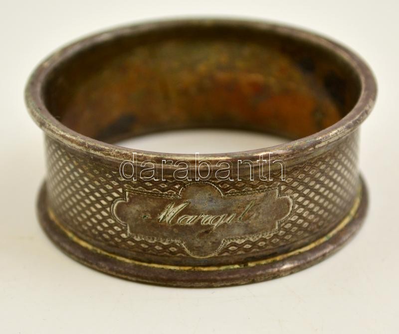 Leírás: Ezüstözött alpakka szalvétagyűrű, "Margit" felirattal, d:5,5 cm