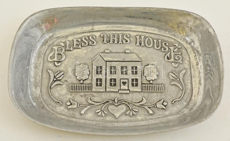 Leírás: Házi áldásos fém tál, angol felirattal "Bless this house", 24×16 cm