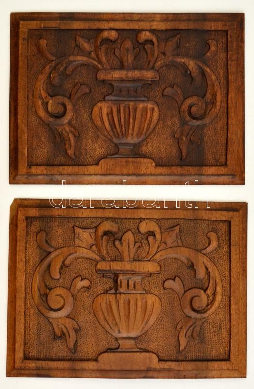 Leírás: Régi faragott bútorrátét párban, 21.5×16 cm
