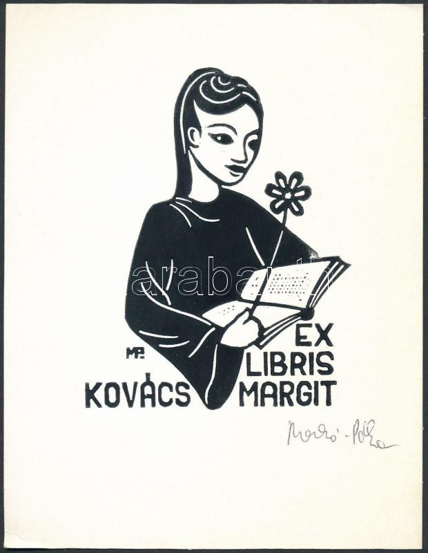 Leírás: Meskó Anna (1943-2010)- Póka György (1944-): Ex libris Kovács Margit. Linó, papír, jelzett, 13x10 cm