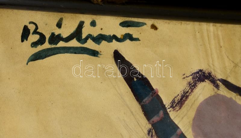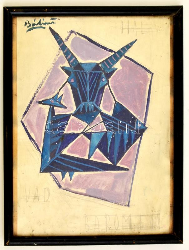 Leírás: Bálint jelzéssel: Állatok. Akvarell, papír, üvegezett keretben, 28×21 cm
