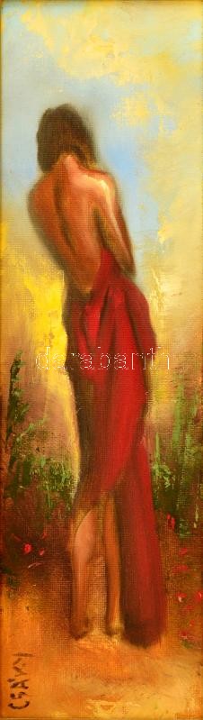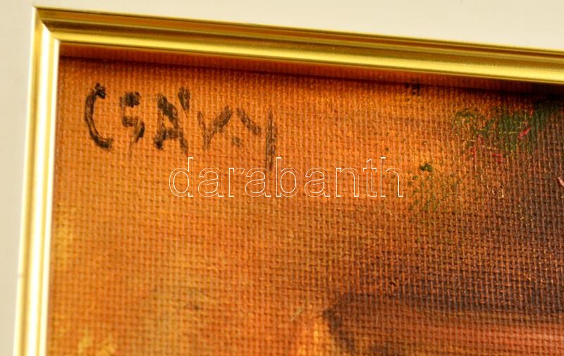 Leírás: Csáky Lajos (1950- ): Este, olaj, vászon, jelzett, fa keretben, 30×8,5 cm