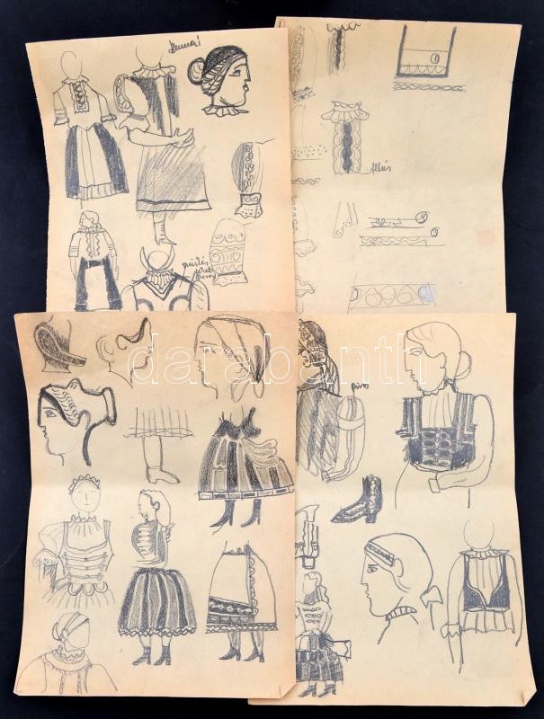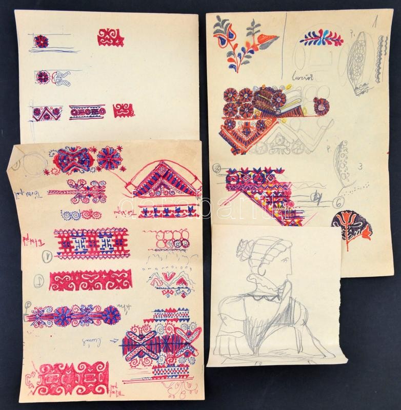 Leírás: Fabók Gyula (1942-): 9 db népművészeti rajz vázlata. jelzés nélkül