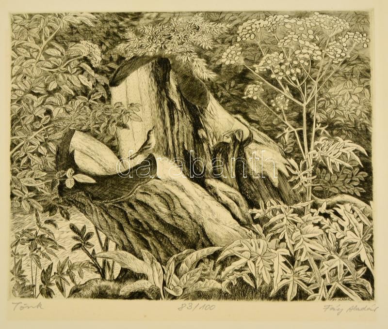 Leírás: Fáy Aladár (1898-1963): Tönk, rézkarc, papír, jelzett, számozott (83/100), 25,5×29,5 cm